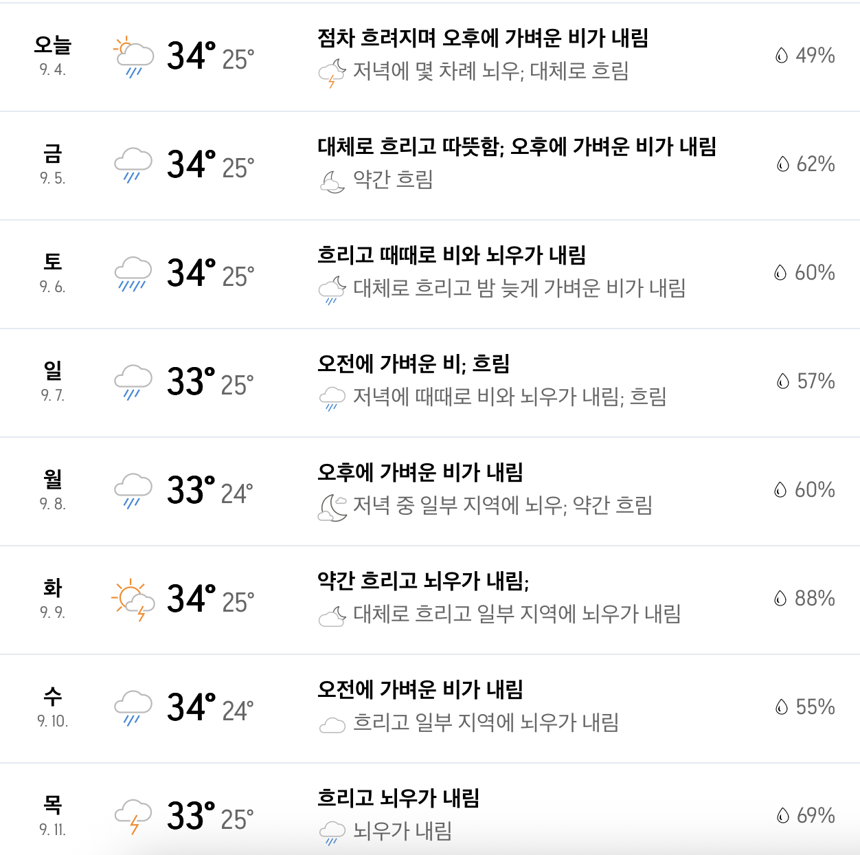 그래서 낮에는 덥고 습하다가 오후나 저녁에 갑자기 소나기가 내리구요,